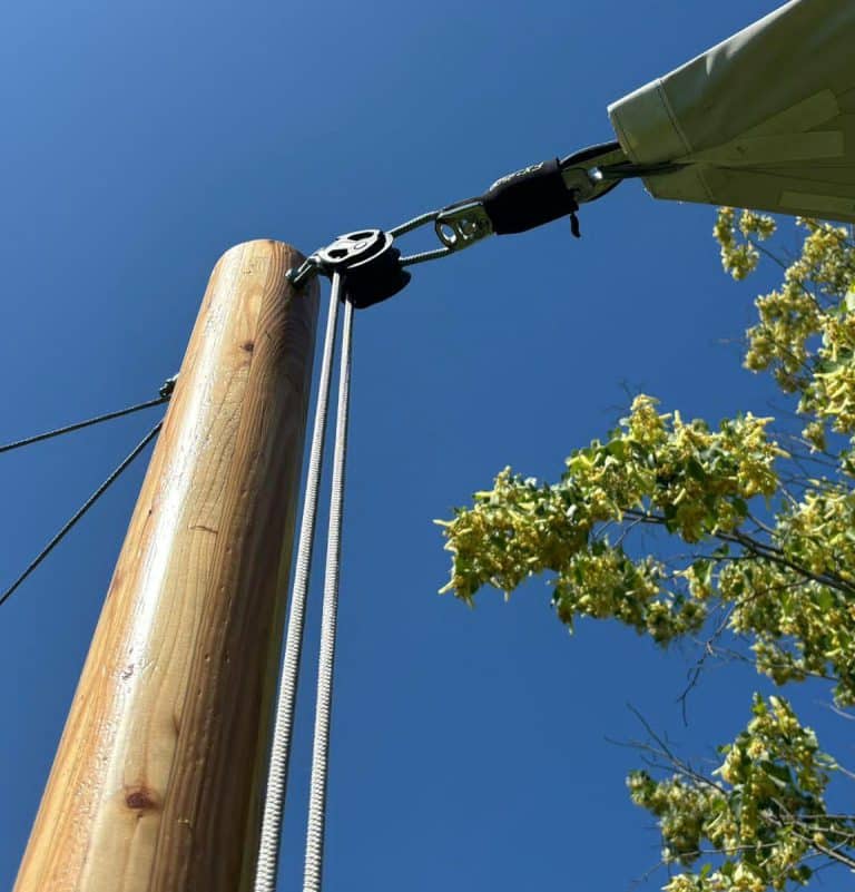 Le mélèze est un bois résistant à l’humidité et aux termites, sans traitement, parfaitement adapté aux installations extérieures. Plus léger que le chêne, il permet une pose plus simple, tout en assurant une bonne tenue mécanique pour des voiles de taille modérée. Ce mât peut être scellé directement dans la terre, le gravier ou le béton, pour une mise en place rapide et fiable. Une solution pratique et esthétique pour créer une zone ombragée pleine de charme.